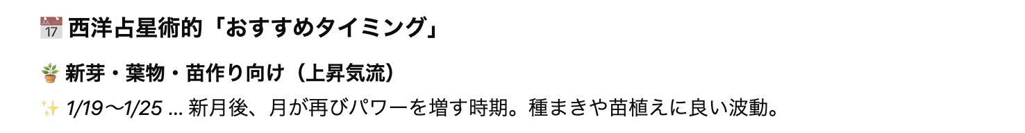 ChatGPTに聞いてみると、苗を植えるのは新月以降の方がいいとの回答だったので、明日以降に作物たちを植えよう!